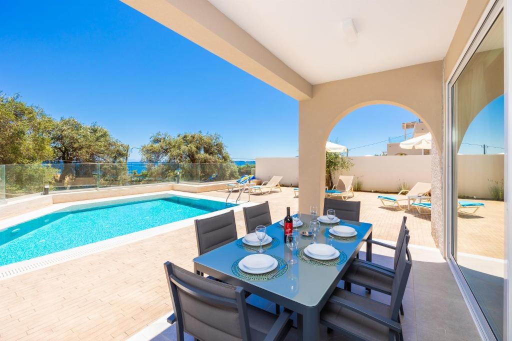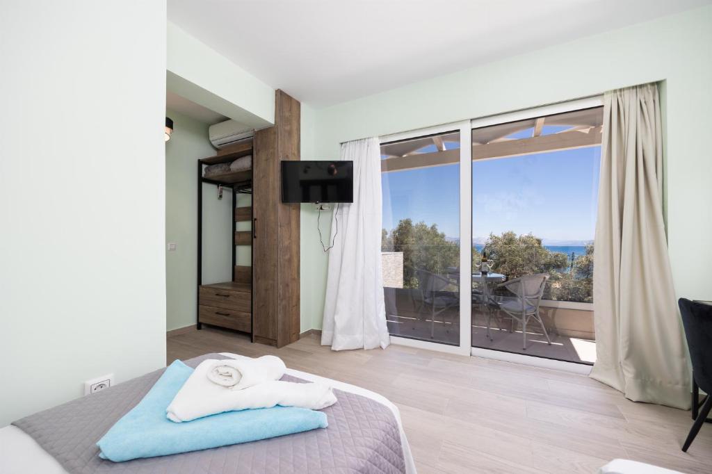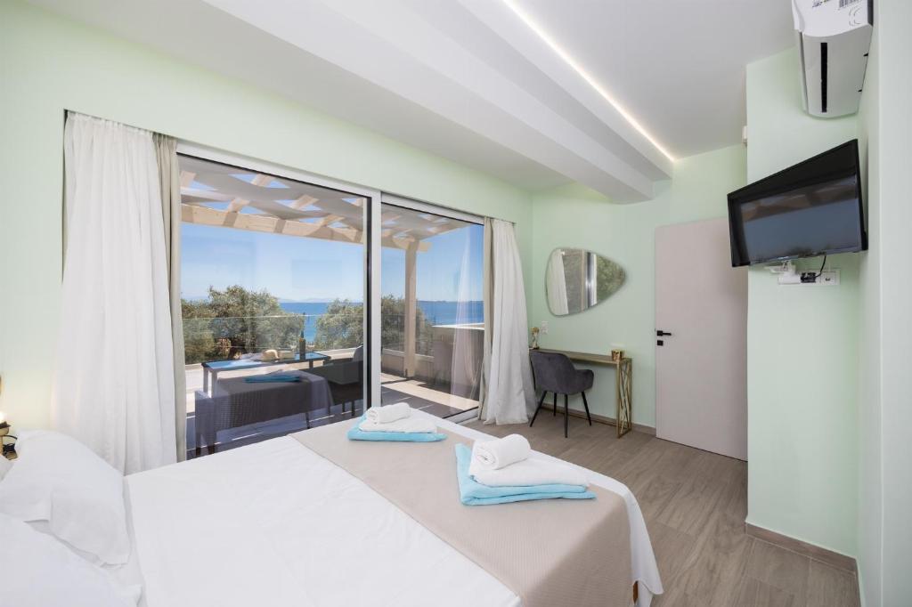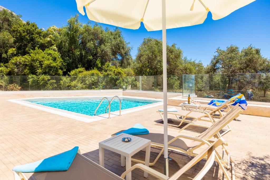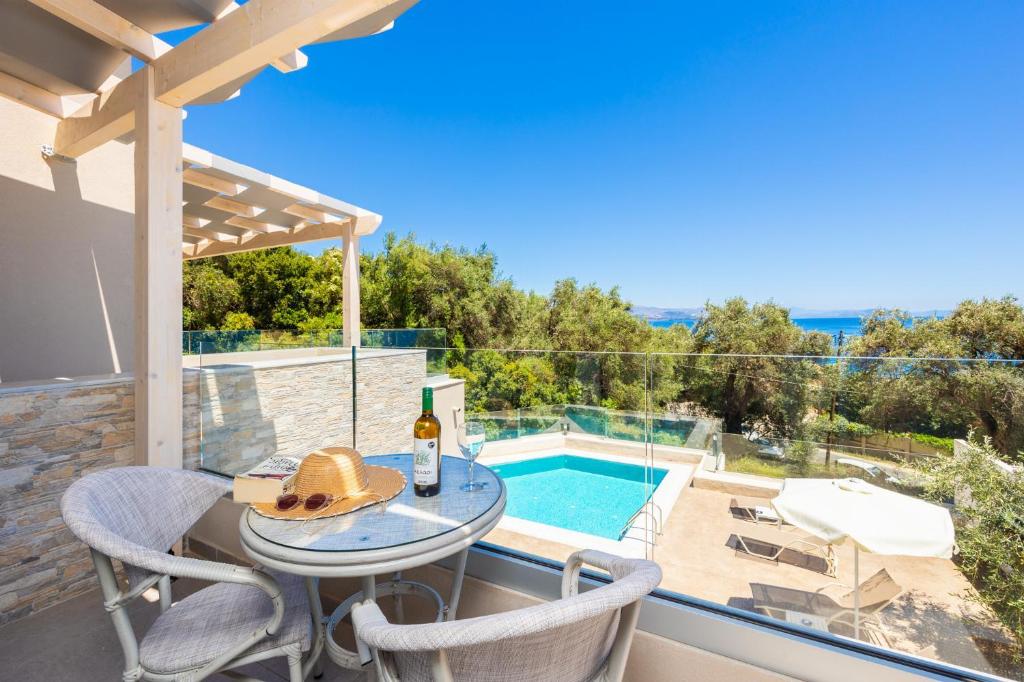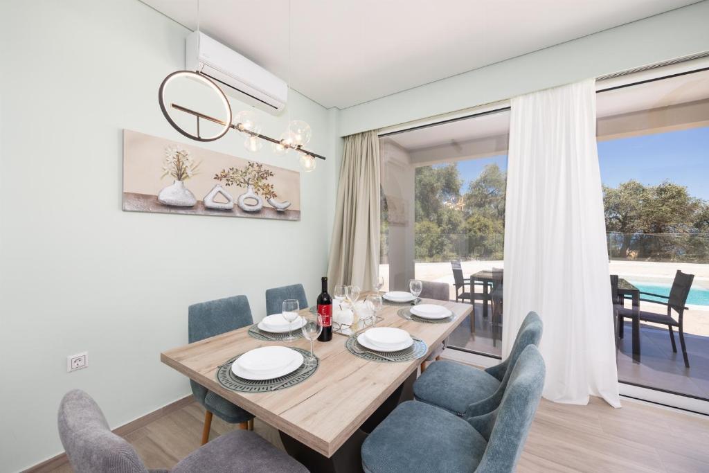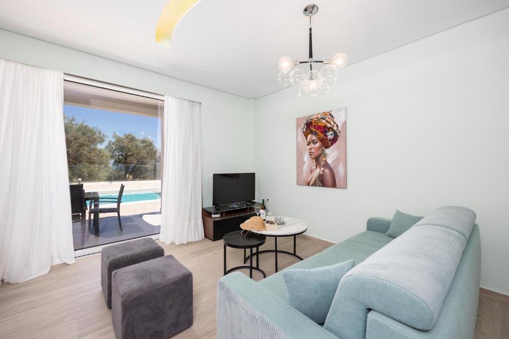 Outdoors, a private pool invites you to relax under the sun, framed by sweeping views of the Ionian Sea and Corfu’s lush green hills. A BBQ area and shaded seating provide the perfect setting for family meals or evening gatherings. Private parking is also available for your convenience.